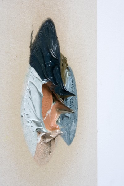 After working on raw canvas for the last year or so, moving to paper has been really interesting. I use smooth Bristol, which has very little texture and remains very flat and absorbs the oil from paint in a really nice way. It’s prompted me to explore other extremely porous materials. For instance I’ve been using raw MDF (medium density fiberboard) and applying paint directly to the surface. It makes these really nice halos around the paint as the MDF leaches the oil out of the paint. I’m not really sure what’s going to happen to these pieces as they continue to change with time.