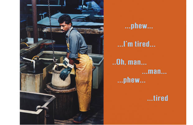 Ken Lum, "Phew, I’m Tired," 1994. Chromogenic print, aluminum, enamel, Sintra. Collection of the Vancover Art Gallery; courtesy Vancouver Art Gallery.
