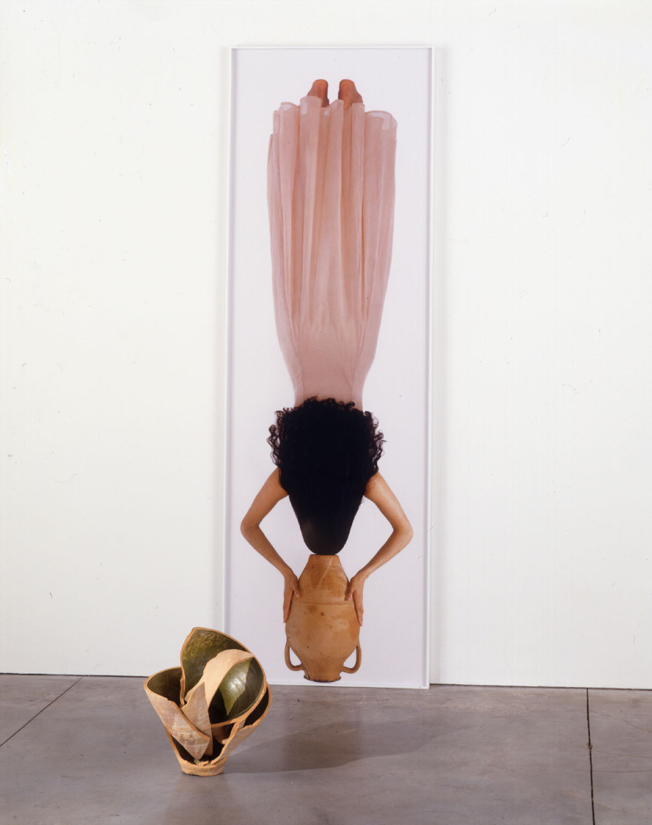 Janine Antoni, "Caryatid (Terra Cotta Amphora)," 2003. Photograph and broken vessel installation. Courtesy the artist and Luhring Augustine, New York.