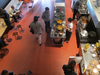 Tiravanija’s concurrent silkscreen t-shirt factory is one nod, among others, to Andy Warhol, whose work with soup is as relevant today as it was in the 1960s. In November, the New York Post reported on the ironic fact that one of Warhol’s soup can paintings had sold for $24 million in the same week that Campbell’s soup company announced that its earnings, as the reporter wrote, “might not be so tasty after all,” likely due to high unemployment rates. How can we partake in Tiravanija’s soup kitchen today and not think about economies of eating or, for that matter, the economy at large? By serving soup, the artist shortens the gap between art and life while also acknowledging (if not critiquing) the boundaries of the context in which he cooks.