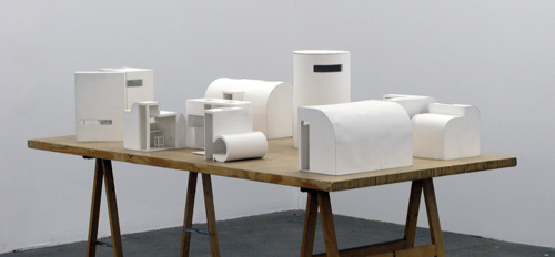 It was back in 2005 when I first encountered the work of Absalon at Berlin’s Hamburger Bahnhof in a exhibition called Fast Nichts – Minimal Artworks from the Friedrich Christian Flick Collection (fast nichts means “almost nothing” in German). In many ways, if you’ve been to Dia: Beacon, you’ve seen a good portion of Fast Nichts — works by Carl Andre, Blinky Palermo, Bruce Nauman, and so forth. One of the (admittedly numerous) exceptions to the above claim is the work of Absalon. Somewhere in my digital archive, I still have a few the photos I took of his work, Cellule No. 2 (Protoype) (1992). While wandering through the vast halls of the Hamburger Bahnhof’s Reickhallen, I was immediately taken by the human-scale (but still quite small), white igloo-like structure that essentially has no more room than that which one might need to live. The house, or cell, or cellule, not larger than two queen-sized beds put side-by-side, consists of a desk or table, a sleeping area that is rather tomb-like, and an small stall that features a prototypical shower/toilet combination.