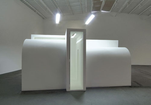 ABSALON: "Disposition," 1990. Installation view, wood, cardboard, white dispersion paint, 6 neon tubes, 40 elements 140 x 928 x 1028 cm; 110 square meters. KW Institute for Contemporary Art, 2010 Courtesy Collection du Fonds régional d’art contemporain Languedoc-Roussillon. Photo: Ethan Hayes-Chute, 2010.