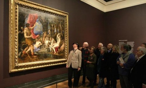 It’s remarkable how often these performances of revealed beauty take center stage in major museum acquisitions of works of art. (Because we’re worth it, they seem to say, justifying themselves to a skeptical public.) Once an artwork is sold, it is changed permanently. The purchase itself seems part of the painting’s meaning, its reason for being. Very expensive contemporary art does this too: big, shiny objects by Hirst, Koons, or Murakami are themselves performances of expensiveness, in which the painted observer (Mary, Actaeon) is substituted for the gaze of the valuer, auctioneer, purchaser. Rapture is implied.