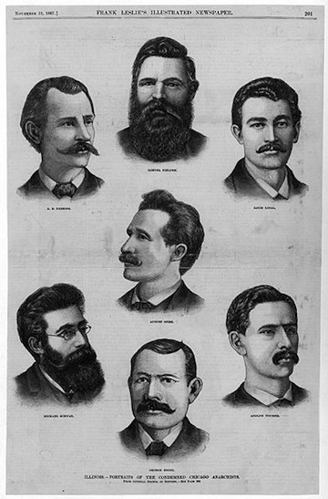 The Haymarket events began as a rally in support of the eight-hour workday but turned unexpectedly violent when, at the end of an otherwise peaceful series of speeches, police ordered the crowd to disperse. A pipe bomb was thrown by an unknown perpetrator, killing police officer Mathias J. Degan. During the ensuing rounds of gunfire, six more officers were shot (many, the Chicago Tribune reported at the time, by friendly fire). In all, eight policemen died and dozens of officers and civilians were wounded. Eight men were subsequently arrested for their roles in the rally, including a newspaper editor turned anarchist activist named Albert Parsons. Parsons and several others were tried and sentenced to death, despite the prosecution’s explicit acknowledgement that none of them had thrown the bomb. As four of the men walked to the gallows on November 11, 1887, witnesses report that they sang the “Marseillaise,” the anthem of both the international revolutionary movement and the French nation.