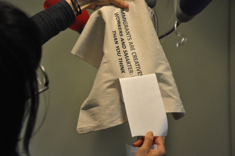 Tania Bruguera, "Immigrant Movement International," 2011 - 2015. Event #1: MAKE A MOVEMENT (Slogan Workshop), April 3rd, 2011. Courtesy Studio Bruguera and Immigrant Movement International. Photo by Ahram Jeo.