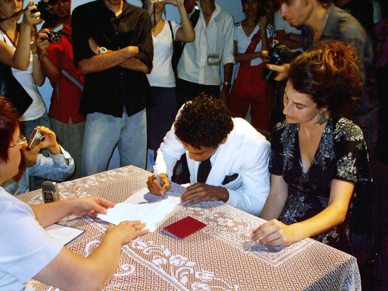"ARTE DE CONDUCTA," a project by Tania Bruguera. "Estado de Excepción" ("State of Exception" exhibition), X Havana Bienal, March 24th - April 2nd, 2009. Artist: Núria Güell. Title: "Ayuda humanitaria / Humanitarian help." Year: 2009. Medium: long-term performance. Materials: a Cuban who wants to leave the country, lawyer, marriage. @ Núria Güell/ ARTE DE CONDUCTA, 2009. Photo: Mauricio Miranda.