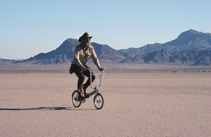 Reyner Banham, the Silurian Lake south of Death Valley in San Bernardino County, California. Photo: Tim Street-Porter. Via archpaper.com.