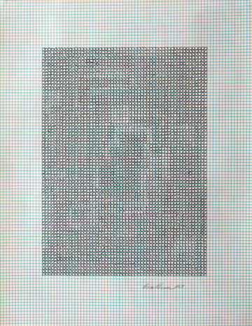 Next to it, Eva has started out with graph paper. But even on the gridded page, she had drawn lively, organic circles inside the squares, each one as different as a snowflake, all of them wrestling with the grid as if the elegant, artistic version of a slug in a box.