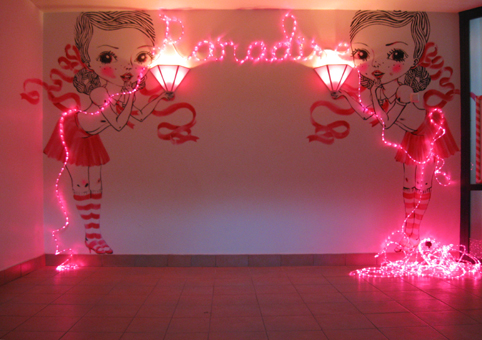 Upon completion in the coming years, Katja will defend her thesis. Katja’s work will culminate in a book; Paradis will be a collection of twenty-six installations and the accompanying texts, each one named after one letter in the English alphabet. The tone of the writings varies with the installations and paintings. Sometimes Katja adopts a more scholarly voice, but she always speaks from the perspective of an artist—never with a put-on or over-intellectualized front. She stressed that artists should not try to be philosophers or art critics when they write. There is merit in the point of view of artists that become compromised when artists ineffectively try to wax philosophical. Furthermore, what is most important to Katja is that she enjoys the writing as much as she enjoys the painting. The process and product for both mediums must convey a sense of her pleasure.