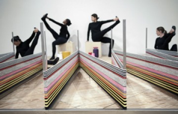 Anne Wilson, “Wind-Up: Walking the Warp Houston,” performance with Hope Stone Dance, CAM Houston, 2010. Photo: Simon Gentry.