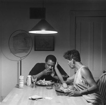 When you compare An-My Lê’s video featuring “29 Palms” with Krzysztof Wodiczko’s interview discussing the meaning of peace, and then view Carrie Mae Weems’ “The Kitchen Table Series”, a broad picture gets painted with these themes. An-My Lê discusses the beauty of war and Krzysztof Wodiczko asserts that working towards peace “cannot be peaceful”. Carrie Mae Weems illustrates through her photographs and commentary that even our own kitchens are the stage for very different kinds of war and power struggles.