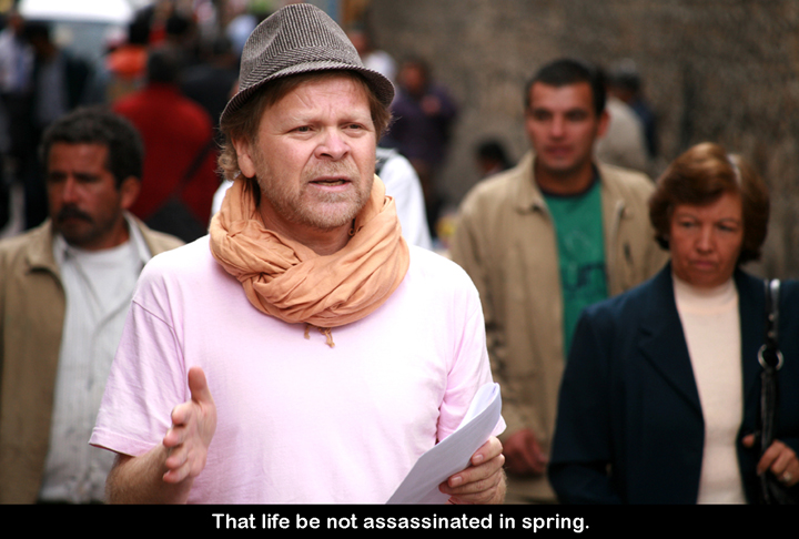 As in many of Motta’s works, Six Acts constructs a kind of archive, an archive of what has gone unnoticed and that is at risk of being forgotten by a culture’s memory of itself. One can witness a similar archival tendency in all the works of Democracy Cycle, of which Six Acts is just one part. In The Immigrant Files: Democracy Is Not Dead; It Just Smells Funny (2009), the artist collects interviews with Latin American immigrants/exiles to Sweden. Through the series of interviews, one becomes able to see the contradictions and antagonisms within Sweden’s idealized democratic system. Similarly, by collecting over four hundred video interviews with pedestrians on the streets of twelve Latin American cities in The Good Life (2005-2008), Motta provides his viewer with a variegated composite of how Latin Americans view the US’s role in Latin American geopolitics throughout the past century. While many citizens are enraged by what they perceive as a gross injustice committed against that region by the US, others are ambivalent, if not seemingly ignorant, of the US’s actions. In his most recent project, We Who Feel Differently, the artist and multiple collaborators explore a variety of problems surrounding contemporary queer and LGBT activist communities in the US and abroad. Conducting video interviews and collating and commissioning articles for a journal, We Who Feel Differently offers an extensive web archive on issues regarding sexual and gender politics and histories.