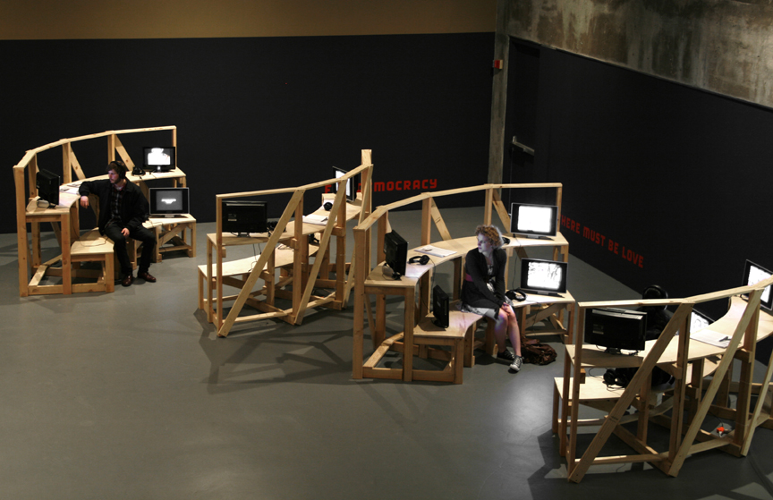 I recently completed a six-year cycle of five projects, the Democracy Cycle (2005-2011), through which I approached the concept of “democracy” from a variety of “marginal” social perspectives: U.S foreign policy (The Good Life, 2008), political asylum (The Immigrant Files), “Liberation Theology” (Dios Pobre 2010), memory of political conflict (Six Acts, 2010), and queer activism (We Who Feel Differently, 2011). Through each one of these projects, I wanted to question democracy, a system of government that has been idealized as the only functioning political system, yet which also permits the exclusion and discrimination of certain individuals and communities, and is complicit and co-constituent with the historical development of deregulated global capitalism. All of these works were stimulating to work on because they challenged me to work with people’s life experiences and to understand the fantastic ways in which these individuals have been fighting to achieve political representation on their own terms against dominant systems of political representation.