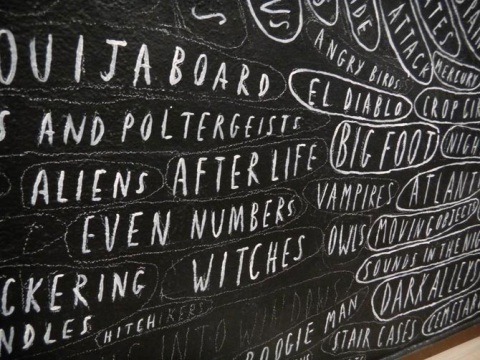 Brian Rea, "Visions and Fears Mural" (detail). Mural installation at the Joan Miro Foundation, Barcelona, Spain.
