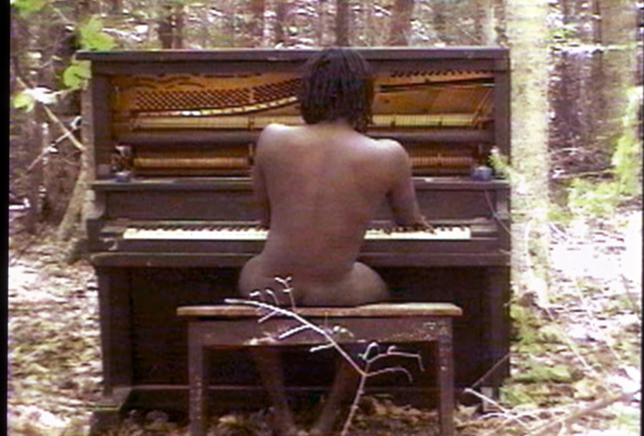 In 1998, I began an ongoing, video-documented performance where I placed an upright piano in the woods and over the course of two months regularly played jazz and gospel improvisations in the nude. This process was largely meditative and obviously quite liberating, but I had no idea what to do with the footage until shortly after, when James Byrd and Matthew Shepard were brutally killed in separate hate crimes. The resulting piece turned into Bittersweet the Fruit. It was comprised of the footage edited erratically to create an unsettling sound and videoscape that was shown on a tiny monitor embedded into the trunk of a tree surrounded by glass bottles. I learned a great deal about process in this work, and how sometimes the most ridiculous actions can find poignant applications.