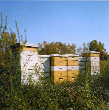 For over a year, Chávez has visited the land where the Pruitt-Igoe buildings once stood time and again, intrigued by how so many different sectors of society – local residents, government officials, architects, urban planners, social workers, and artists – have symbolically claimed the story of Pruitt-Igoe, while the land persists in a state of abandonment. Only blocks away from the city-center, the lot has now transformed into a fifty-acre urban forest. Chávez explains, “I entered this forest expecting the remains of a community but was surprised to see the beginning of another.” Upon noticing the number of bees that have claimed the forest as their own, Chávez came to think about not only the sculptural similarities between unadorned beehives and the Pruitt-Igoe towers, but also about the metaphorical potential of bee communities. Like St. Louis’s population, honeybees are on the decline. However, in contrast to the unnatural living conditions in Pruitt-Igoe, bees provide a model for community organization.
