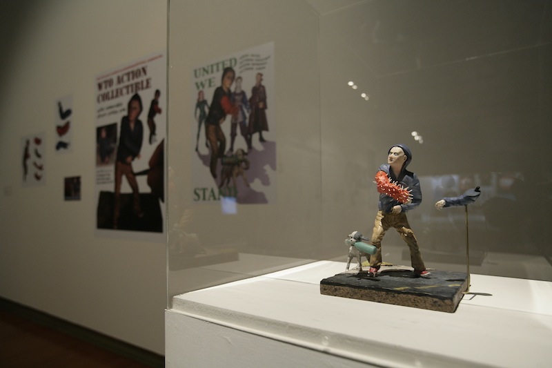 Sholette’s dirty messianic approach also comes across in his appropriation of dioramas, window and museum displays, and souvenirs. Playing upon our familiarity with these 19th century formats, Sholette moves fluidly between sentimentality and criticality, ironic abandon and the recognition that, as Walter Benjamin famously wrote (and Sholette quotes through a particular work of his citing the relationship between John D. Rockefeller’s founding of the New York MoMA and management of his public image after a mining disaster): “There is no document of civilization which is not at the same time a document of barbarism.” Moving within the flicker of “civilization” and “barbarism,” Sholette tells history slant, through the eyes of the losers, the unrecognized (and unrecognizeable), citing the places where anomalies and antagonisms crucial to history’s retelling “flash-up.”