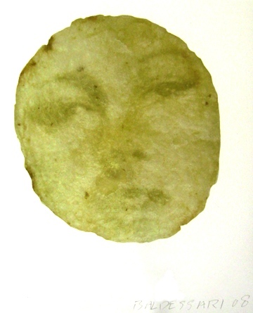 John Baldessari’s print is a potato chip with a face inside of it. A few years ago, we did a trade when he came to my show of drawings of the Presidential Candidates at Circus Gallery in Los Angeles (now closed). I wanted to just give him a drawing (for being a great human being and teacher) but (in the spirit of being a great human being and teacher) he insisted on trading–and this solitary isolated face in a potato chip has been hovering on my wall ever since.