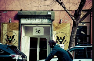 Exterior view: Institute for Wishful Thinking Artists in Residence for the US Government at Momenta, April, 2011. Photo: Bianca Prime.