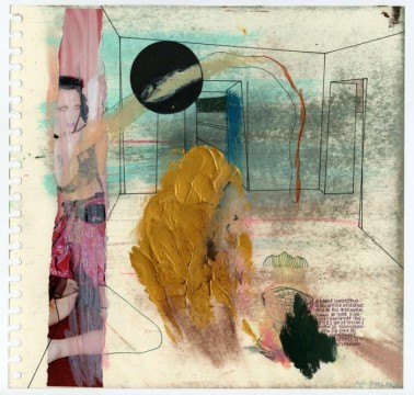 Anne-Mie van Kerckhoven is an artist based in Antwerp, Belgium. Her work is currently being featured in a solo exhibition, In a Saturnian World, at the Renaissance Society (on view through December 18). The exhibition includes an interactive animation along with numerous works on paper and digitally-produced prints. Her mixed media works often include images from vintage soft pornography magazines along with excerpts of text and bright, bold planes of color. Her works point to the contemporary issues around technology and sexuality while sourcing material from the past.