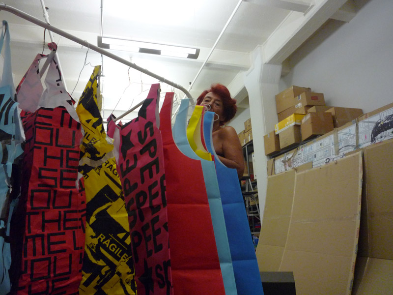 Earlier this month, Paperophanies was commissioned by the Praxis Project Gallery at Atrium Art Museum in Vitoria, in collaboration with local communities, artists, universities, and foundations as well as the Guggenheim in Bilbao. The project was inaugurated in the Basque Country in Spain and was curated by Blanca de la Torre. According to the exhibition description, Paperophanies “offers new kinds of mechanisms to explore collaboration, social relations, identity, fashion, action and the commons. Marketou has transformed the PRAXIS gallery into a fashion atelier where workshops take place daily, which after two months culminates into a public event in the form of a public protest ending in the Plaza de la Virgen Blanca.”