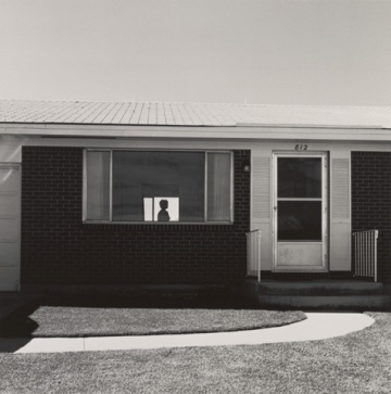 Many artists have portrayed the trademark sameness of the man-made suburban environment. While their images often suggest generic scenes, their very act of depiction—the artists’ decision to focus on that particular town or house, car or lot—individualizes the subject matter. Images like Robert Adams’s Colorado Springs, Colorado (1968–70) capture the landscape’s clean lines and serial nature. But the lone woman standing inside reminds us that even in the most sterile and controlled environments, individuals persist. She remains unknown to us, and this distance amplifies the possibilities of her experience: Is she crying inside? Lonely or sad? Is she simply wondering what to clean next? Does she know she’s being watched?