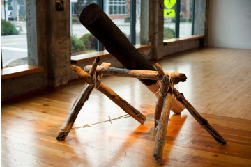 As part of an afternoon of performances, the artists built a Quaker Cannon using found materials, and aimed it directly at the entrance to the gallery. This act occurred last winter, shortly after the Smithsonian’s removal of David Wojnarowicz’s film from the exhibition Hide/Seek: Difference and Desire in American Portraiture, and though its creation had no direct or intentional correlation to that event it acted as a reminder of the conversational context of a work of art. Situated in a space that had recently hosted a screening and discussion of the censored film, the work provided a new context of confrontation.