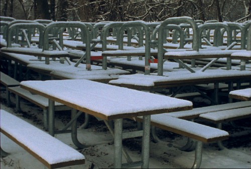 TC: Well, it’s all film. The section of the path, that was all shot on Super-8. Then there’s a section that’s constructed very consciously like a home movie. Everything else, with the exception of the opening sequence and the closing sequence, everything else is 16. The opening and closing sequence is regular 8. The way those cameras were constructed, you shot half of the film at a time and then you flipped the film over and exposed the other half. And back then people would take their film to the lab and the lab would actually cut the film in half, tape it together and send your film back in one strand. I was interested in that structural image.