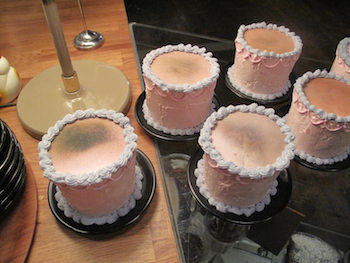Artist and pastry chef Victoria Yee Howe, who has been featured on this blog before, continues to push the boundaries of frosted art. This year, she participated in the first ever food + art residency at Seattle’s Arabica Lounge. Twice a week for eight weeks she has created the Lounge’s dessert specials, some of them more “avant-garde” than others. For instance, her series of Bruise Cakes. Made from a strawberry-purée batter (a southern classic known as “Pink Lady”) and layered with fresh blueberry preserves, these cakes sound heavenly until Howe explains the inspiration for their title and coloring: each is topped with a photo-transfer of different bruises that past lovers have left on her body. “I have always taken photos of different cuts or scrapes I have had, accidental or consensual or whatever,” says Howe. “…I love the idea of playing with people’s conceptions of what is desirable and edible and maybe even making them a little uncomfortable with their hunger.”