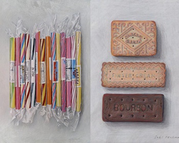 Joël Penkman. "Blackpool Rock," (left) "Cream Biscuits" (right), both from the British Sweets Collection, ongoing.