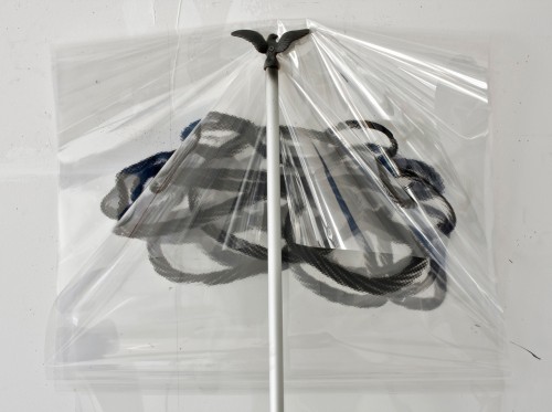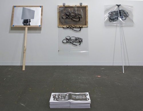 If the aleph makes us picture a negation of sight that occurs through the simultaneous presence of too many perspectives, inversely Premnath’s work also presents us with a series of ciphers: those figures awaiting signification, meaning-making, desire, which appear ostensibly “blank.” In his work the cipher is a site of possibility in the imagination, or within said language games, where socio-political transformation, but also the potential for socio-political violence and cultural-historical displacement, would seem to co-exist. So we see in the installations Green Screen and Zero Knot forms of political gesture without content: a hand extended, or seemingly waving. Signage without slogans or demands also appear throughout Premnath’s work, an index of events yet-to-come, or as-yet-unresolved.