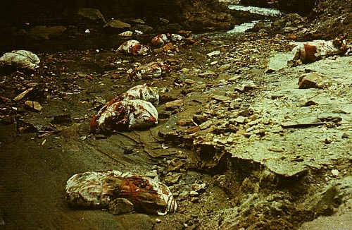 Artur Barrio. "Trouxas ensanguentadas, in Situação…T/T1; Belo Horizonte," April, 1970. From the book "Inverted Utopias. Avant-Garde Art in Latin America," p. 370.