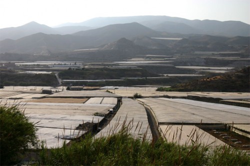 Through such projects as Public Amateur, Pentecost redefines visual art’s value for intervening in the public sphere. Instead of maintaining their value as commodity fetish, art works take on a socio-political function, enabling citizen-artists to “think what we are doing” (Hannah Arendt). The result of much of Pentecost’s art is documentary in nature. It documents places she has traveled, and presents ways that photography in particular can correlate and mediate sites of biopolitical production. Through her documentary-research practice, she takes up Robert Smithson’s dialectic between “site” and “nonsite.” What has changed between Smithson’s and Pentecost’s eras is the nature of sites, where sites are more than ever things often unseen to the “naked eye,” occluded by mass media and geographic displacement (off-shore production or detention, for instance). In projects like Plastic Greenhouses by the Sea (2005), Pentecost maps the occlusions and displacements of a social landscape, documenting how labor practices and tourism interact through the industrial agricultural processes of southern Spain, where much of the greens of Europe are cultivated. In this photo series the view changes whether you are looking at the Mediterranean from above a luxury hotel, or just beyond the hotel where the white trap-covered greenhouses lie. Other photos show us worker’s shacks, highlighting the relationship between labor exploitation, food production, and touristy.