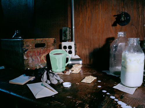 WC: I find myself falling back to cheap paintings on cardboard. Growing up my mom was a puppeteer and my dad did theatre. It started when I was making a photo and I couldn’t find an object from the right time period. I was pissed off, and I painted it on cardboard and just stuck it in the shot. It worked, so then I just started making more and hiding them in my photos.