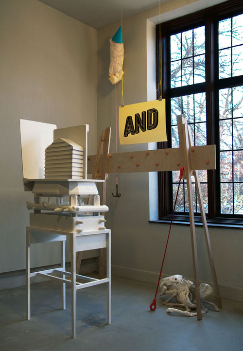 IJ: Right. It’s a way to tie together my interests: I want to make drawings, I want to make things with fabric and with wood, and I want to reference the autobiographical through the journalist. I think of journalism similar to that of Hunter S. Thomson; gonzo journalism.