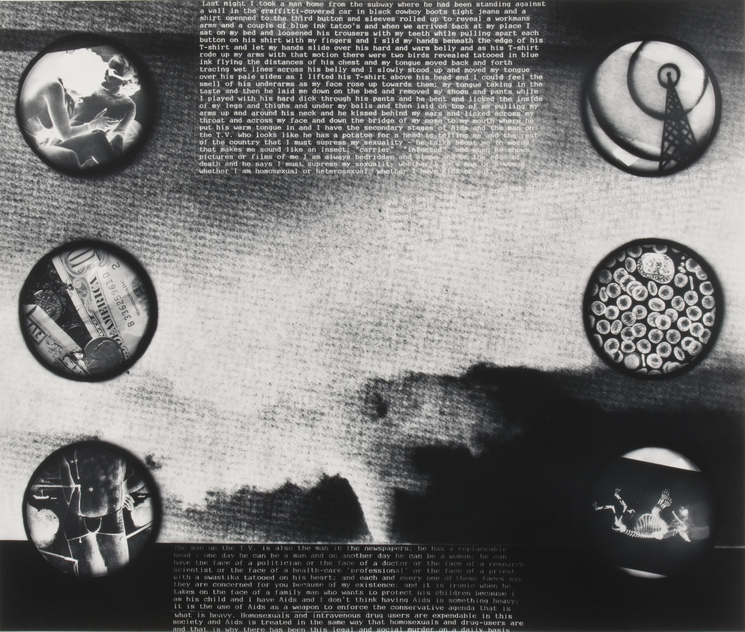 Young artists finding their place within the AIDS activist movement rather than the conventional art world have had reason to take these issues very seriously. Identity is understood by them to be, among other things, coercively imposed by perceived sexual orientation or HIV status; it is, at the same time, willfully taken on, in defiant declaration of affinity with the ‘others’ of AIDS: queers, women, Blacks, Latinos, drug users, sex workers. Moreover, authorship is collectively and discursively named.”