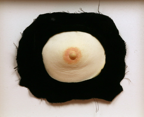 The very last work in the exhibition actually wasn’t made by a woman at all. Marcel Duchamp made it, and it’s a rendering of a woman Surrealist’s breast. Duchamp cast the breast of artist Maria Martins, who went mostly by Maria, and inserted a latex replica of it on the cover of a 1947 edition of Le Surréalisme, next to a sticker that read Prière de Toucher or “Please Touch.” We can’t touch the version in In Wonderland, however. It’s encased in glass, which is one of the few decencies the exhibition shows its subjects.