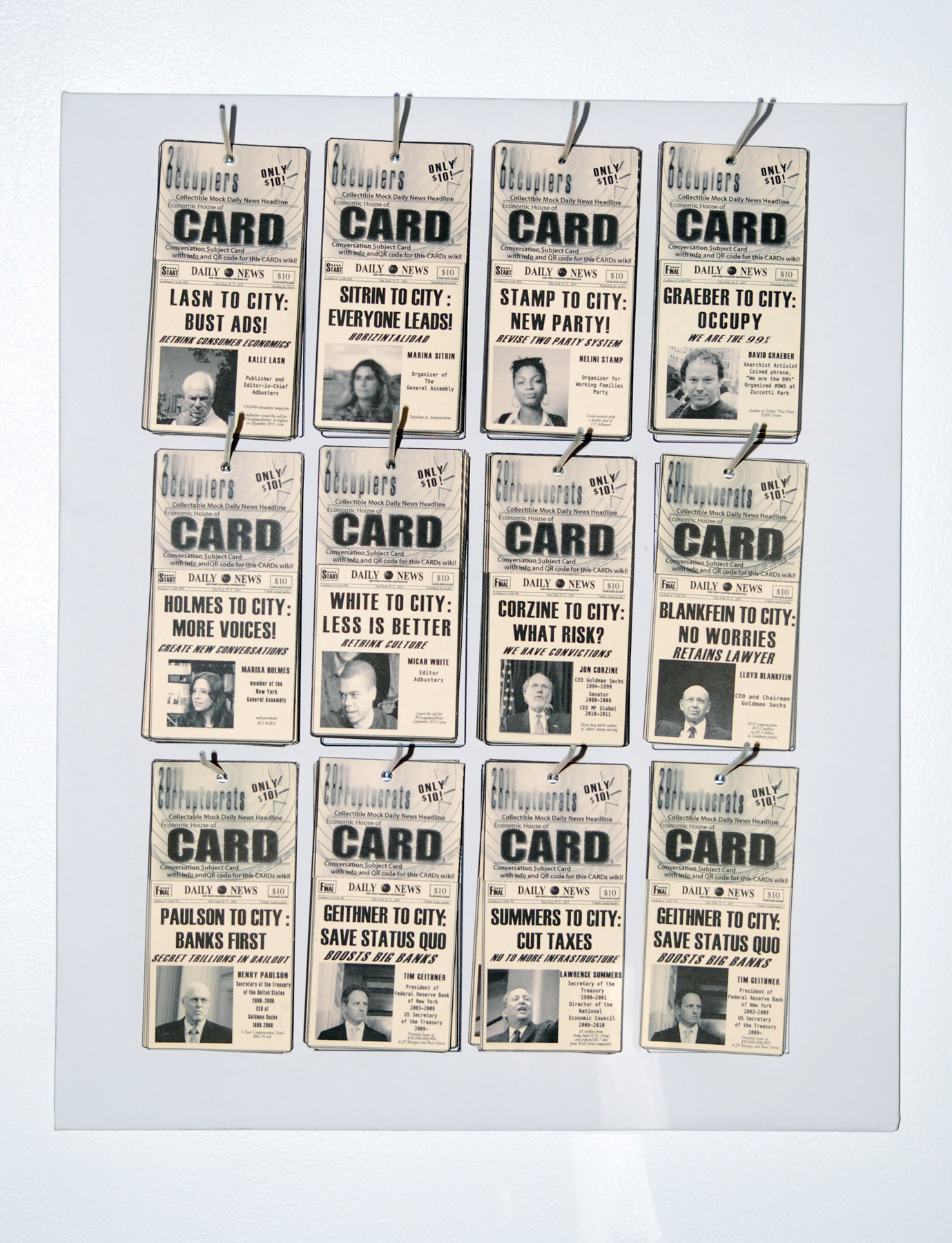 With the collapse of the financial markets in 2008 and subsequent bail-outs of US banks and financial groups came unprecedented criticism of governmental collusion with finance capitalism, criticism that has most recently given us the “Occupy” movement and other waves of protest and resistance worldwide. Oliver Ressler’s and Gregory Sholette’s show at the Austrian Cultural Forum, It’s the Political Economy, Stupid, foregrounds aesthetic responses by groups and individuals to the financial crises ongoing since 2008. What the curators hope to achieve is clearly stated on a wall as one walks into the exhibit:
