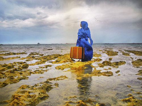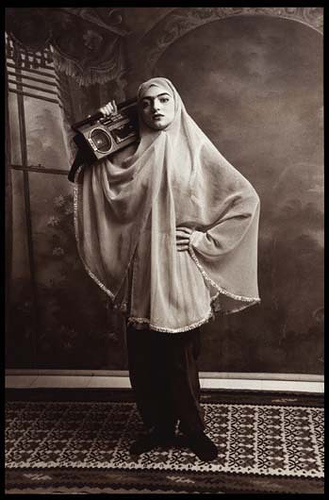 A former professor asked me one time, “Do you think the veil is one of today’s last uncolonized territories?” What kind of absurd question is that? – at least that’s what I thought. Yet my instructor did have a point. You can’t even begin to address gender and female identity in Middle Eastern art without looking at the one object that encapsulates and defines the average Muslim woman to naked, unknowing Western eyes: the veil. Like the hat in English, it’s a piece of clothing that has no singular name in Arabic and no solitary motivation: job, class, ethnicity, law, religion, fashion–these are just a handful of reasons why a Middle Eastern woman may choose to wear a veil.