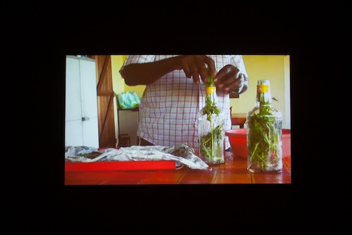 Now, most claims about absinthe’s psychoactive and deleterious effects have been debunked over the last century. Yet marketers–and even I—still cling to ideas of the exotic, forbidden, and besotting. Absinthe is supposed to be the stuff of daredevils. Latamie responds to myth with a dose of reality. In a film projection titled L’Absinthe de Monsieur Gentil, the eponymous Mr. Gentil is shown at home in Martinique coolly preparing a batch of absinthe, and it’s not that extraordinary, really. It’s like watching a friend mix mojitos.