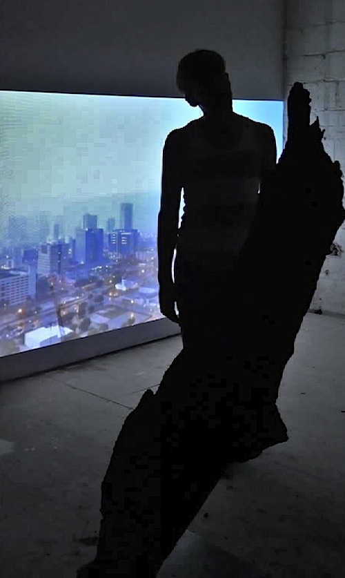Hannes created the installation/performance "Essence," which included dancers romancing a section of a 3,500-year old tree burned down by a drug addict in central Florida, for the one-night show "Situation Range" curated by Southernmost Situations at LegalArt on May 25. Video image courtesy of the artist.
