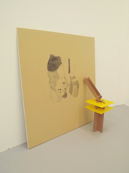 Humberto Duque, from "Conspiracy to Commit Public Nudity," 2011. Pencil on plasterboard, plastic, tape.