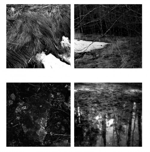 AI: Could you tell me about the more abstract textures that take place throughout both of these projects? For instance, there’s this moment in the split album where full-frames of the storm are paired with this really expressionistic swarm of dark inks. When paired with the photographs there’s this really primal and raw energy that emits from the image. It’s made even more powerful in relationship to the Finland forest images, which feel very straightforward in contrast, and with the picture format, which is a clean square around the photographs. But here, the image’s boundaries are looser, as though they are spilling across the surface…