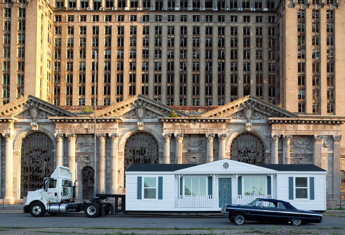 This idea reminds me of Mobile Homestead, a multi-faceted art project by the late Mike Kelley which revolves around a full-size replica of the artist’s childhood home from the suburban town of Westland, Michigan. The structure, a 1950s single-story ranch style house, was literally toured through the streets of Detroit and will be relocated to the center of the city in a reversal of the “white flight” migration to the suburbs which accelerated after the riots of 1967. This project, the first commission by Artangel in the United States, is being carried out in collaboration with the trustees of the Mike Kelley estate and is scheduled to open in 2013 as a functioning community space near the Museum of Contemporary Art Detroit.