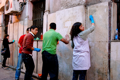 It’s important to remember that artistic resistance is not a new Middle East phenomenon, and I refuse to describe its role in the 2011 uprisings as “a cultural renaissance,” because it wasn’t fueled by enlightenment, but rather public affirmation after decades of privatized dissent. Creativity as dissent in occupied and police state countries have been part of Middle East discourse for a very long time, in art, film, literature and music. Even graffiti has a deeply-rooted history with the Palestine wall, where it’s now seen as a rite of passage to spray-paint something in defiance of Israeli occupation. Yet for most Middle East countries, dissident art existed largely underground or through private mediums in that they protested politics through distribution. Street art on the other hand imposes itself into the public landscape. In this sense, Arabic graffiti did more than communicate; it empowered.