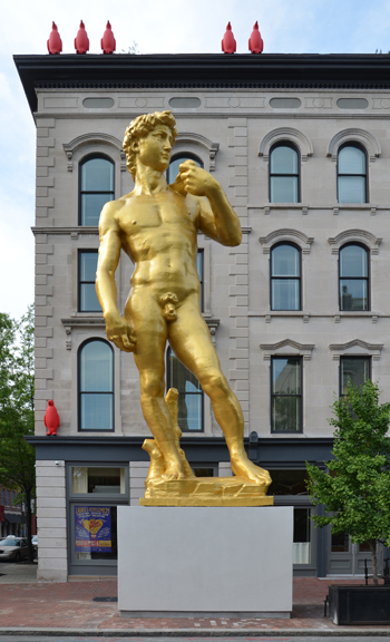 Ozkaya's "David (inspired by Michelangelo)" installed outside the 21c Museum Hotel, Louisville, KY. Source: The Voice-Tribune.