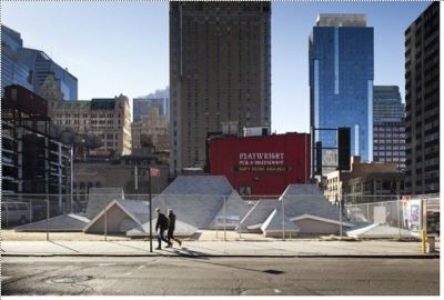First, very few roofers, even fancy ones, are being approached or directly involved with the Art Production Fund, who arranged for David Brooks to complete the project at this particular site- the last piece of empty, undeveloped space in Times Square. Works installed here, including a recent installation by Kiki Smith, have a connection to the surrounding area or make a connection in the work to the context itself. A “creative roofer” could not simply propose a similar project out of nowhere, and even if they did they wouldn’t be telling the same story or making the same associations, so it would be a completely different work even it looked exactly the same.