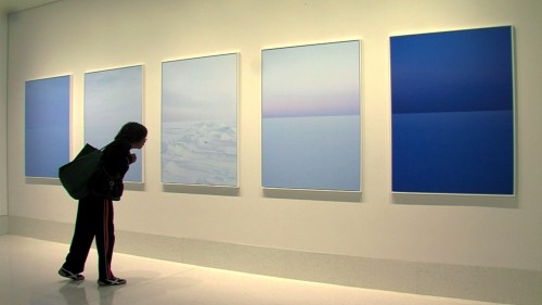 In this Exclusive short, photographer Catherine Opie describes her intentions behind the permanent installation “Somewhere in the Middle” (2011) at Hillcrest Hospital, a branch of Cleveland Clinic, in Mayfield Heights, Ohio. Created specifically for the hospital setting, the installation consists of 22 photographs taken from the shores of Lake Erie near Opie’s hometown of Sandusky, Ohio. It is Opie’s hope that the photographs provide a space for patients, doctors, vistors and hospital employees to experience an ethereal moment during what may be a difficult time in their lives.