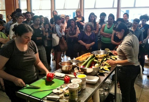 Whether she’s cooking food or composing music, Myers has a propensity for improvisation, taking chances and tossing in the unexpected. She says of making Noise Cooking, “We wanted to add to this idea of sound art”—a genre nearly synonymous with the name John Cage. In this centennial year of the composer’s birth, lots of writers are reminding us why he’s been dubbed “the father of musical invention” or “the father of noise.” Cage upended people’s expectations of music, performance and art. He privileged live experimentation over a set score, and created works free of restraint and full of playfulness. He rigged piano strings with screws and bolts. He used ice cubes, an electric mixer, and a bottle of wine as instruments. He loved chance sounds. Also, he loved to cook. Cage’s kitchen was one stage among the many that he played in his lifetime. In his video 27 Sounds Manufactured in the Kitchen everyday actions—washing vegetables, cracking pepper, and opening lids—give way to a sort of jangled symphony. Cage, I think, would have dug Noise Cooking.
