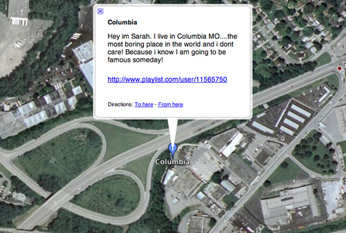 Angie Waller. "The Most Boring Places in the World," 2010. Google Earth tour. Technical Data: Google search query: “the most boring place in the world.” Posts collected from January 10 – May 1, 2009. 55 entries, 52 unique locations to date. Courtesy the artist.